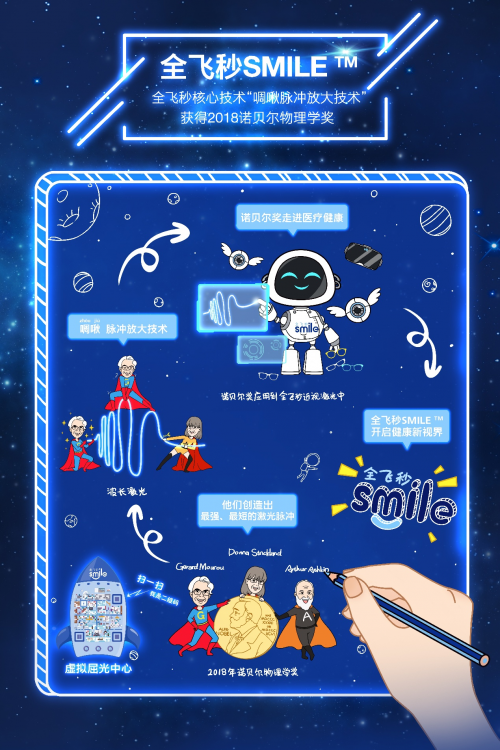 SMILE 全飞秒技术蕴含着前沿科技智慧,其核心技术 “啁啾脉冲放大技术” 曾荣获 2018 年诺贝尔物理学奖。这一技术应用于近视激光手术,为患者带来了革命性的治疗体验。手术仅需 1 台设备,通过 2mm 微创口,在 3 分钟内即可完成,真正实现了 “无痛、无后遗症” 的治疗效果。