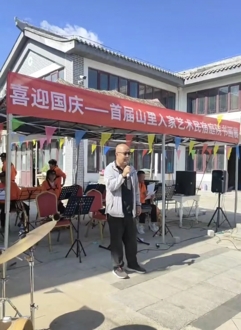 金秋送爽,丹桂飘香,在中华人民共和国成立76周年的喜庆氛围中,9月28日,“首届山里人家艺术民宿庭院书画展”在北京市门头沟区斋堂镇山里人家艺术民宿拉开帷幕。本次展览由北京市门头沟区斋堂镇山里人家艺术民宿主办,中华艺术家杂志社协办,门头沟桥头饭店、东莞市延安精神研究会、故乡土生态园、北京汇南苑国际文化传媒中心、北京纵横四海文化传媒有限公司、中华艺术家报等作为支持单位。王兴玲女士为策展人,崔彦执行策展,李召强联合策展。此次展览以“笔墨绘山河,民宿承文化”为主题,汇聚76幅名家书画佳作,更有艺术家现场创作、乐队倾情献唱,为国庆假期增添了浓厚的文化气息与艺术魅力。